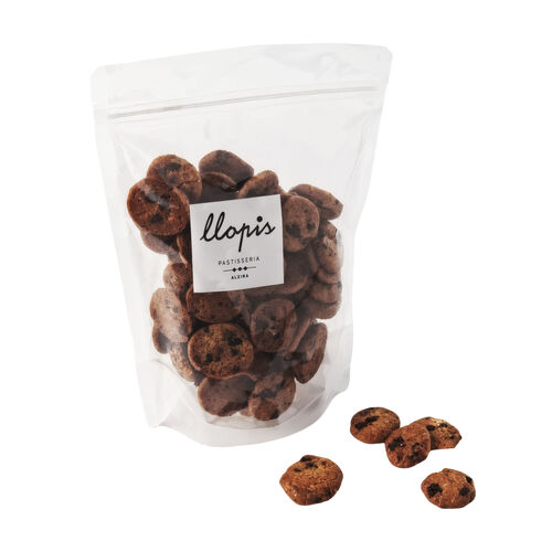 HARINA de TRIGO blanda, azúcar moreno, MANTEQUILLA pascual, drops de chocolate CHD-DR-75Y5-E5-U72 (pasta de cacao; azúcar; manteca de cacao; emulgente: lecitina de SOJA), azúcar blanco, HUEVO, sal, aroma de vainilla natural (EUROVAINILLE) y BACKPULVER/IMPULSOR: (Gasificante(s): E 450, E 500; ALMIDÓN DE TRIGO).